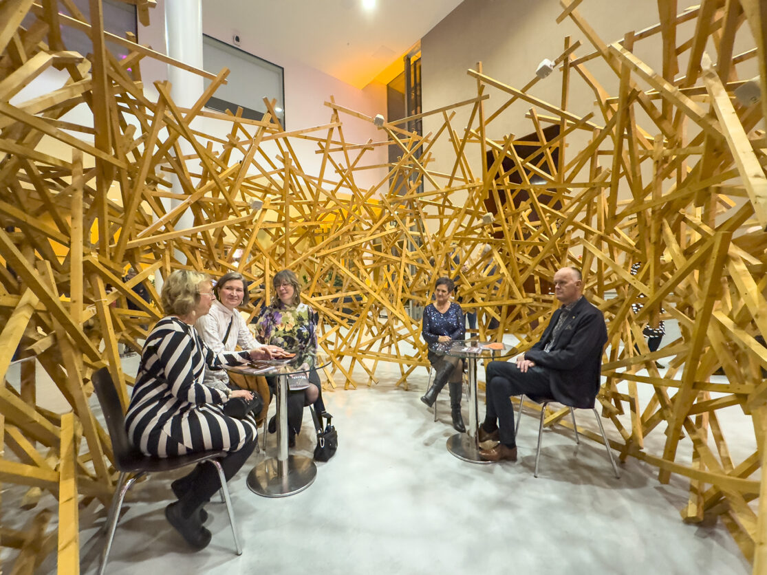 Jan-Erik Andersson & Shawn Decker: Bird’s Nest Jakobstad/Pietarsaari, installed in the Campus Allegro as a part of the Rusk Music Festival 19.11.2024 – 6.2.2025