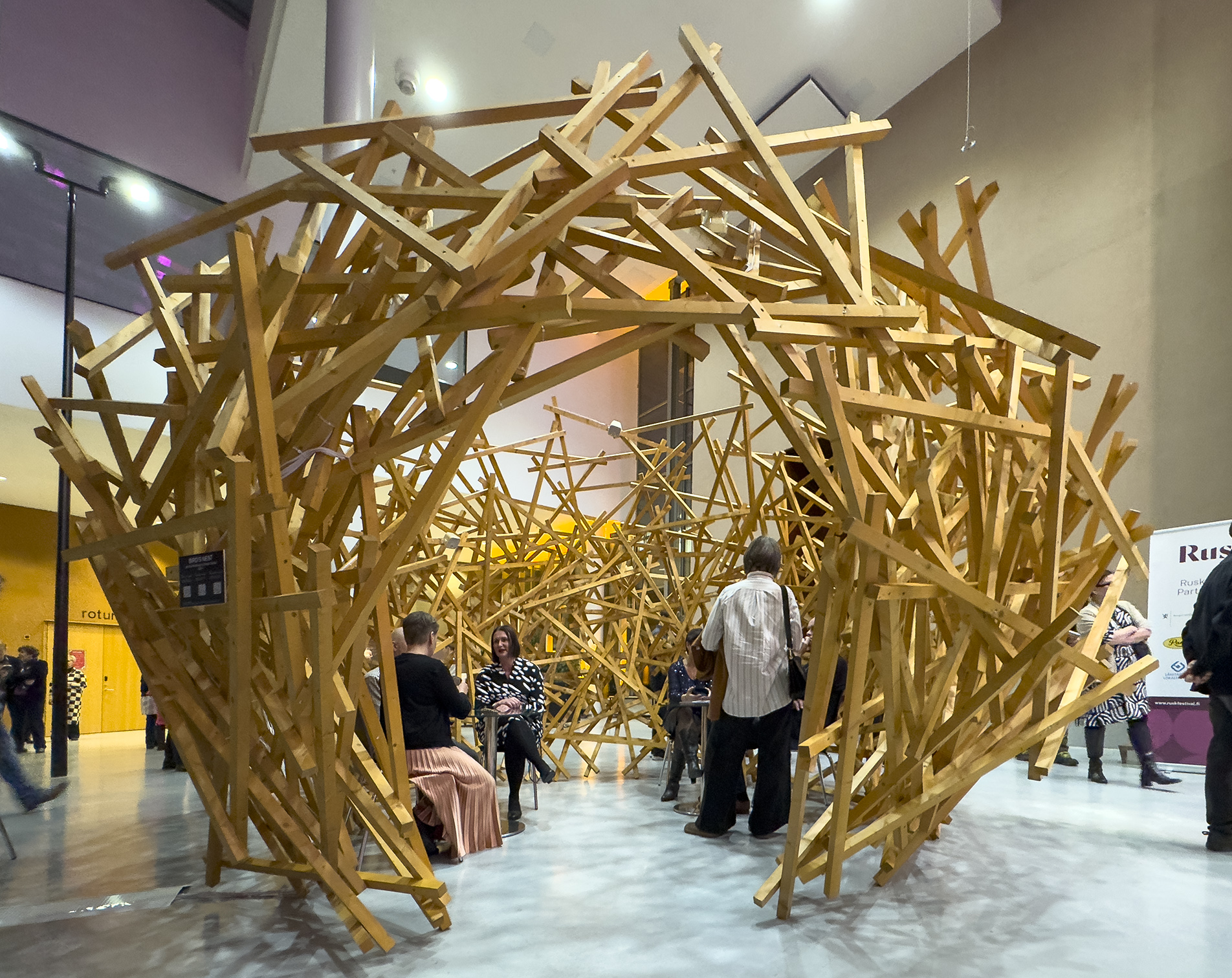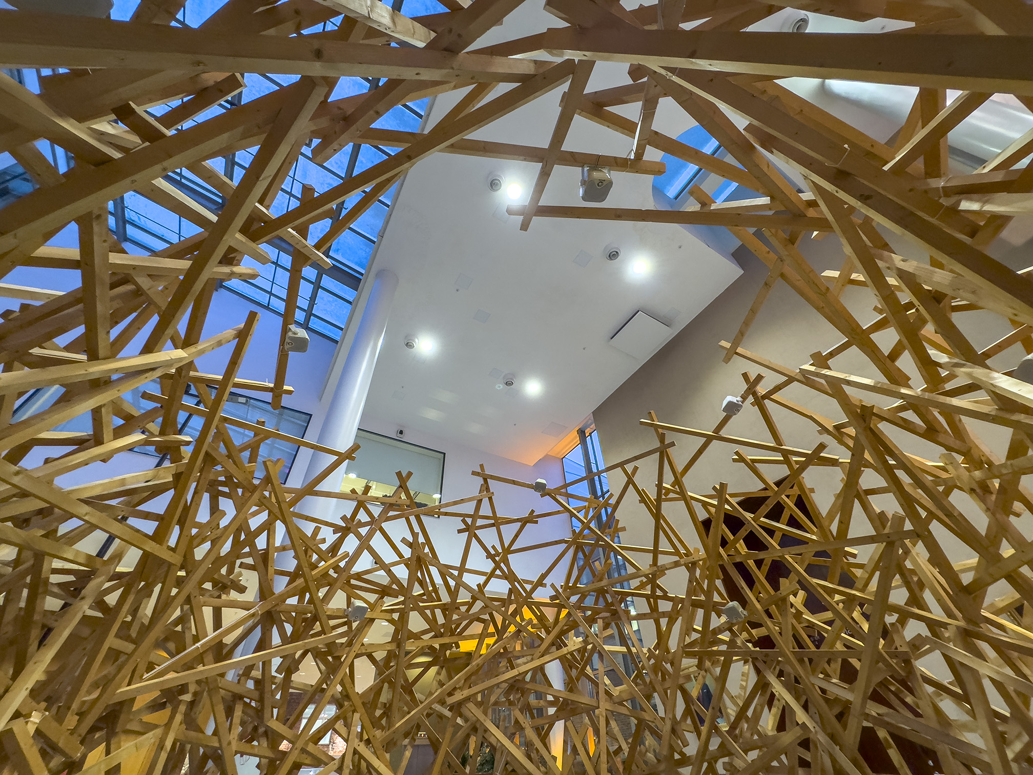 Jan-Erik Andersson & Shawn Decker: Bird’s Nest Jakobstad/Pietarsaari, installed in the Campus Allegro as a part of the Rusk Music Festival 19.11.2024 – 6.2.2025